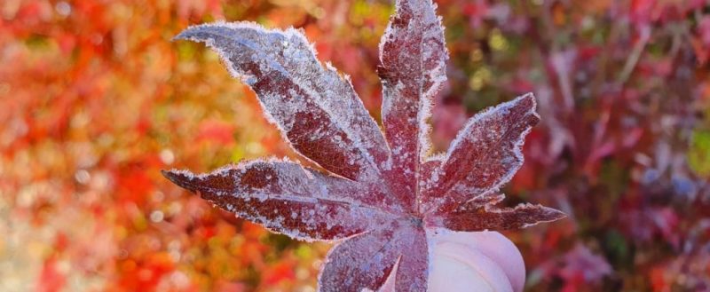 O amanheceres congelantes dos últimos dias trazem novamente a geada e temperaturas negativas no vale dos vinhedos da Serra Catarinense. A mínima ficou na casa dos -2.7ºC registrada pela Rede de Estações Keiser e o resultado foi uma belíssima paisagem de outono numa combinação de nas cores âmbar e escarlate em nuance com o branco puro do gelo sobre a relva nos campos do Vale dos Vinhedos a cerca de 42 km da Serra do rio do Rastro – Bom Jardim da Serra. Sendo assim, já se somam 29 dias com geada no Topo da Serra no ano de 2021.