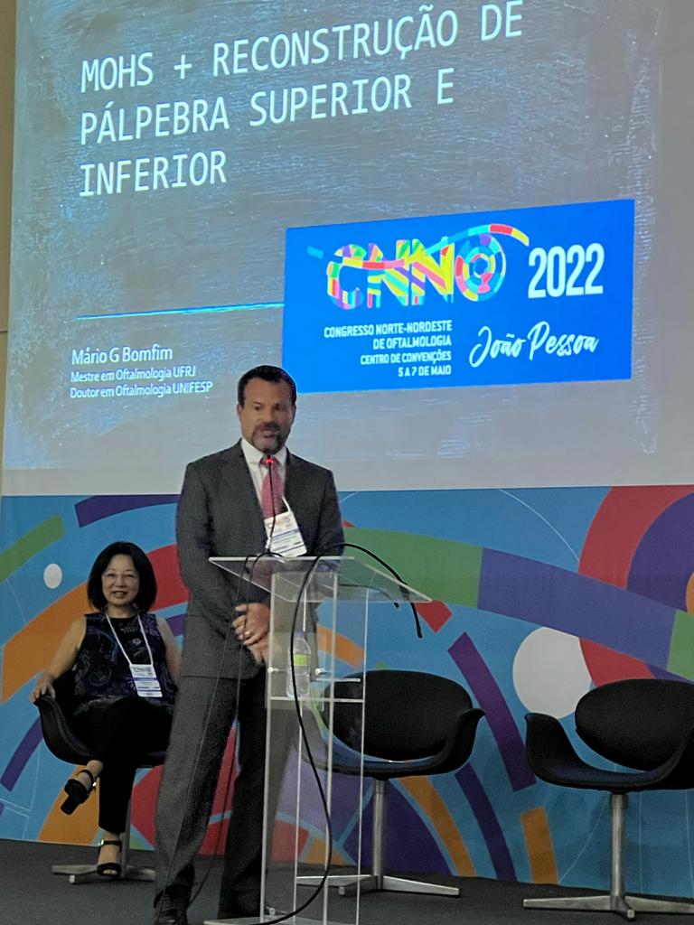 O medico oftalmologista Mario Bomfim está em João Pessoa na Paraíba participando do Congresso Norte Nordeste de Oftalmologia, Mario ministrou aula sobre cirurgia de Mohs e reconstrução de pálpebras nesta quinta-feira. O evento acontece no Centro de Convenções reunindo profissionais de todo o Brasil.