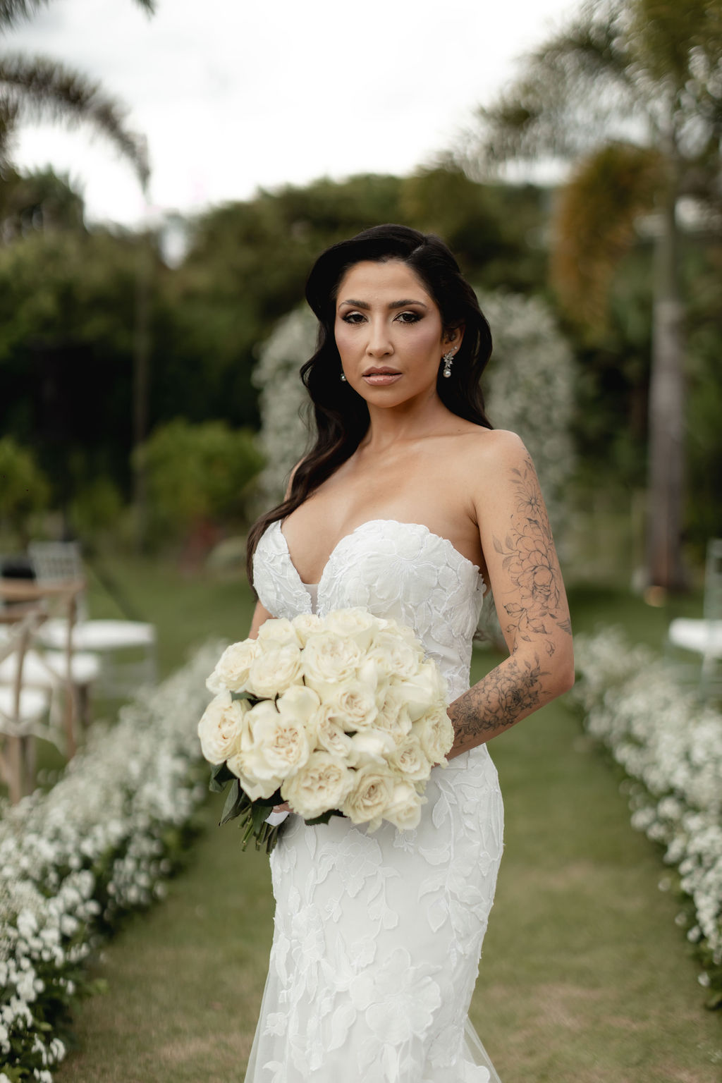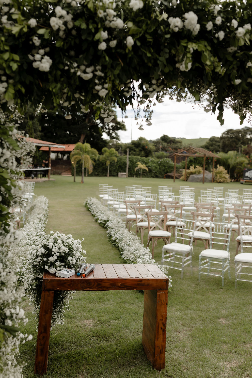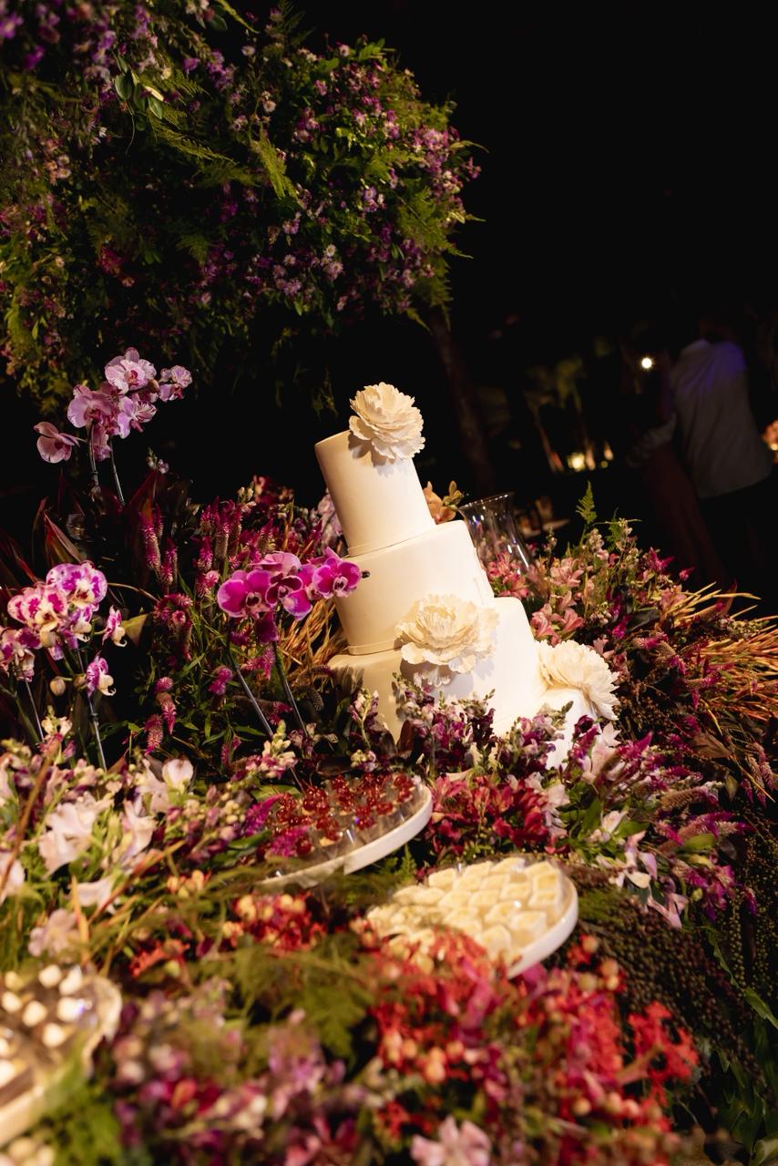A deslumbrante decoração, assinada pela Sunflower Eventos, transformou o espaço em um verdadeiro jardim de sonhos, com composições florais delicadas e uma atmosfera acolhedora e sofisticada.