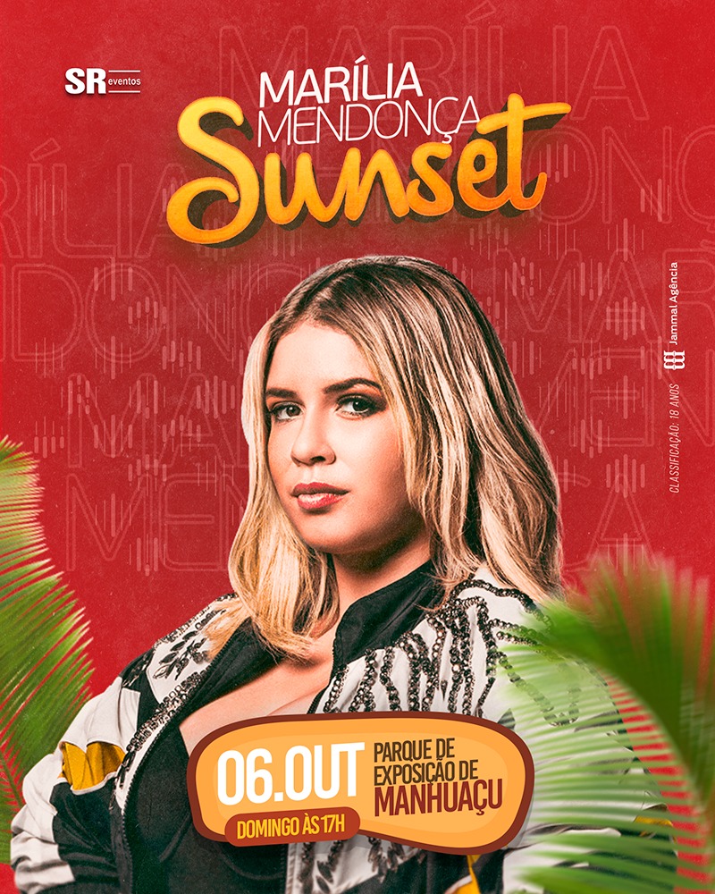 Ela conquistou o Brasil de tal maneira que desde 2014 quando se lançou como cantora vem emplacando nas paradas um sucesso após o outro, o fenômeno Marília Mendonça caiu na graça dos brasileiros se tornando a referencia do novo sertanejo, em 2017 foi indicada ao Grammy Latino na categoria “Melhor Álbum de Musica Sertaneja” com o álbum “Realidade” gravado ao vivo em Manaus. Em fevereiro de 2019 ela lançou o primeiro volume do novo álbum intitulado “Todos Os Cantos”, que tem como singles as músicas Ciumeira, Bem Pior Que Eu e Todo Mundo Vai Sofrer. Em maio de assumiu namoro com o também cantor e compositor Murilo Huff de quem está gravida de um menino que se chamará Léo. No dia 06 de outubro, domingo, ela estará agitando a vizinha Manhuaçu com o Marília Mendonça Sunset que promete movimentar a região sob os comandos da SR Eventos.