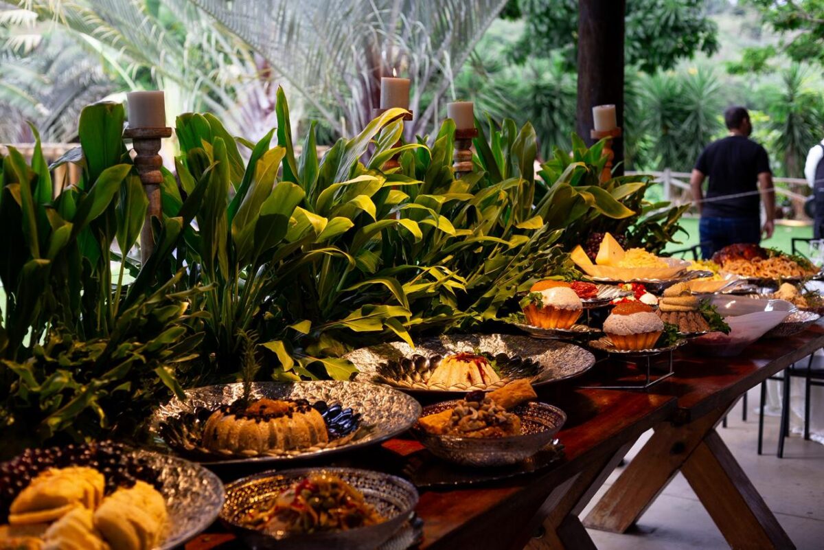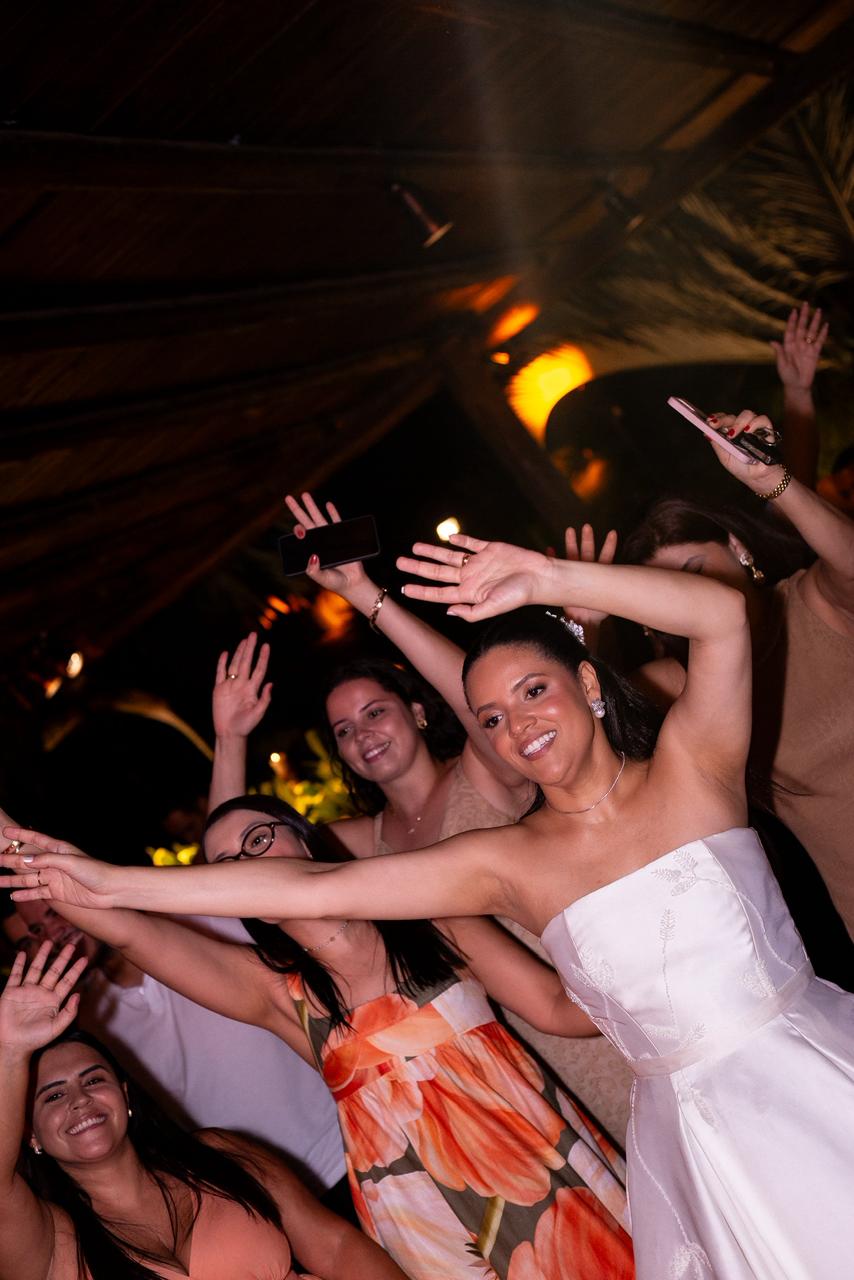 A noite foi cuidadosamente preparada para refletir o estilo e a alegria do casal. O requintado buffet, assinado por Jamile Emery, encantou os convidados com sabores marcantes, enquanto a ambientação ganhou charme especial com a delicada decoração da Sunflower Eventos.